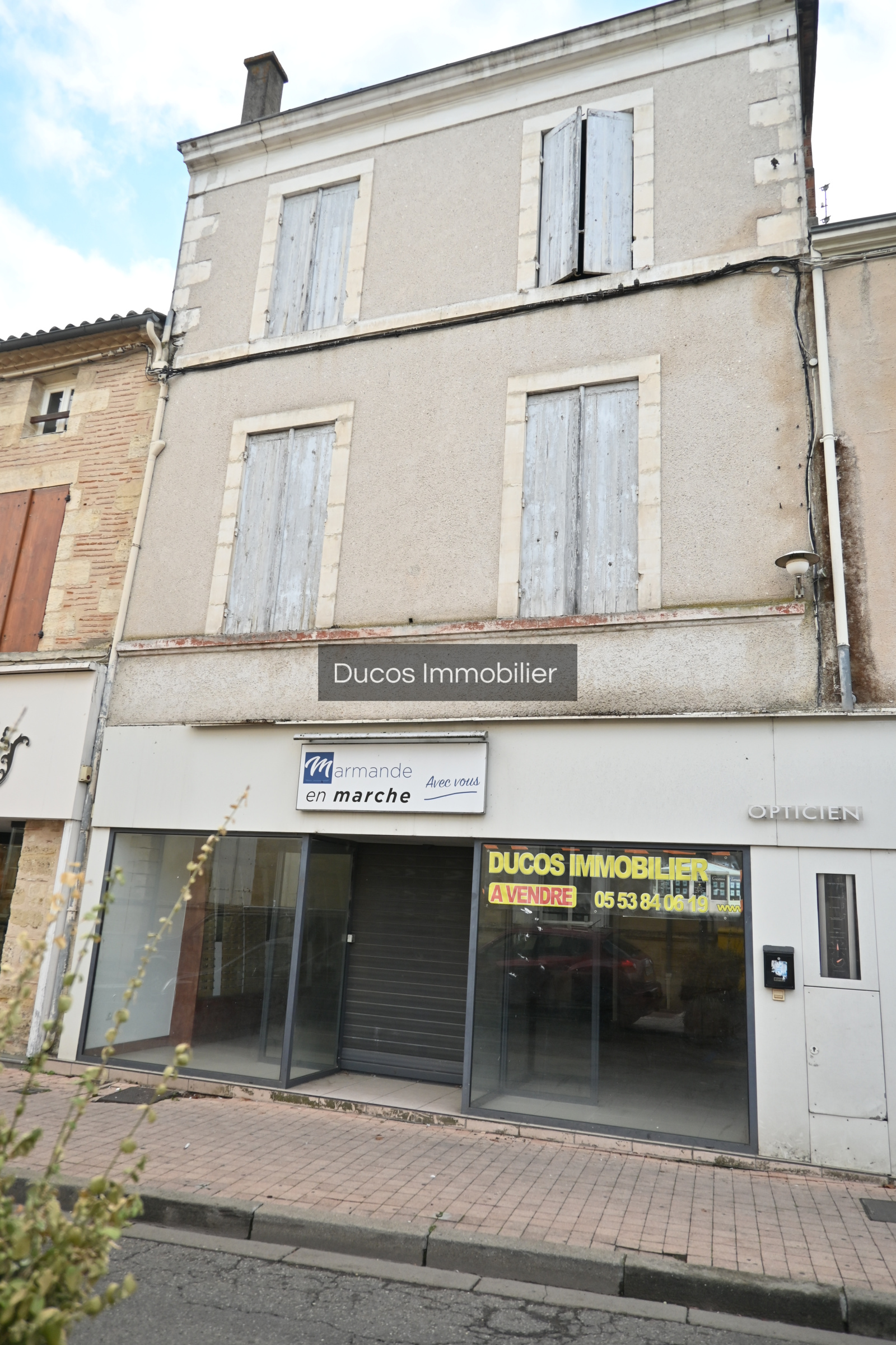 Marmande (47200)IMMEUBLE composé d'une surface de vente de 145 m² en rez-de-chaussé et de différentes pièces au 1ier et 2ième étage. Ces étages peuvent être rénovés pour de l'habitation, tout en conservant la surface de vente en RDC. Systéme de chauffage neuf, toiture en bon état dont une partie vient d'être refaite à neuf.Cet immeuble permet de faire deux commerces séparés ou un seul grand. Immeuble Réf 4087 Agence DUCOS IMMOBILIER.